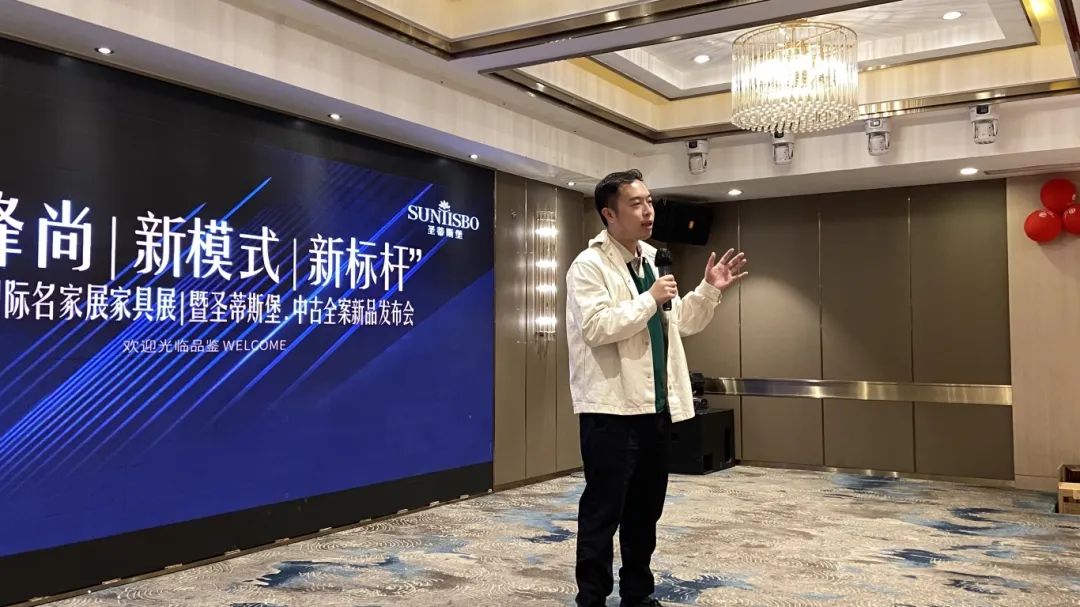 接下来,3377体育中国官方网站工业营销部副经理吴天喜先生为我们重磅揭晓了2025春季新品中古全案系列和新古典全案升级新品,他从选材、设计、风格、工艺等方面进行了全面的讲解,并提到此次中古新品的全案模式是以更具设计感的创新方式,给予消费者整体性的体验感升级,助力大家在激烈的市场竞争中,突显差异化的优势,实现业绩的飞跃式增长。